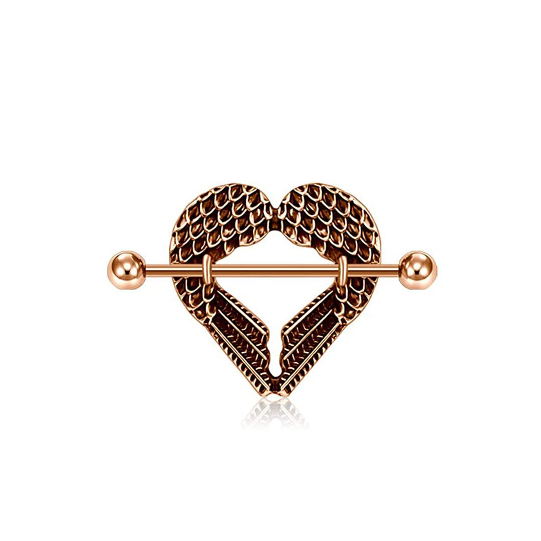 Wing-shaped nipple barbell.