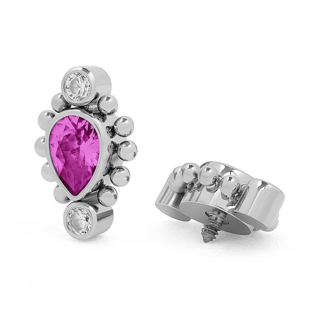 Top with black cubic zirconia crystals and beaded ornaments around implant grade titanium (ASTM-F136)