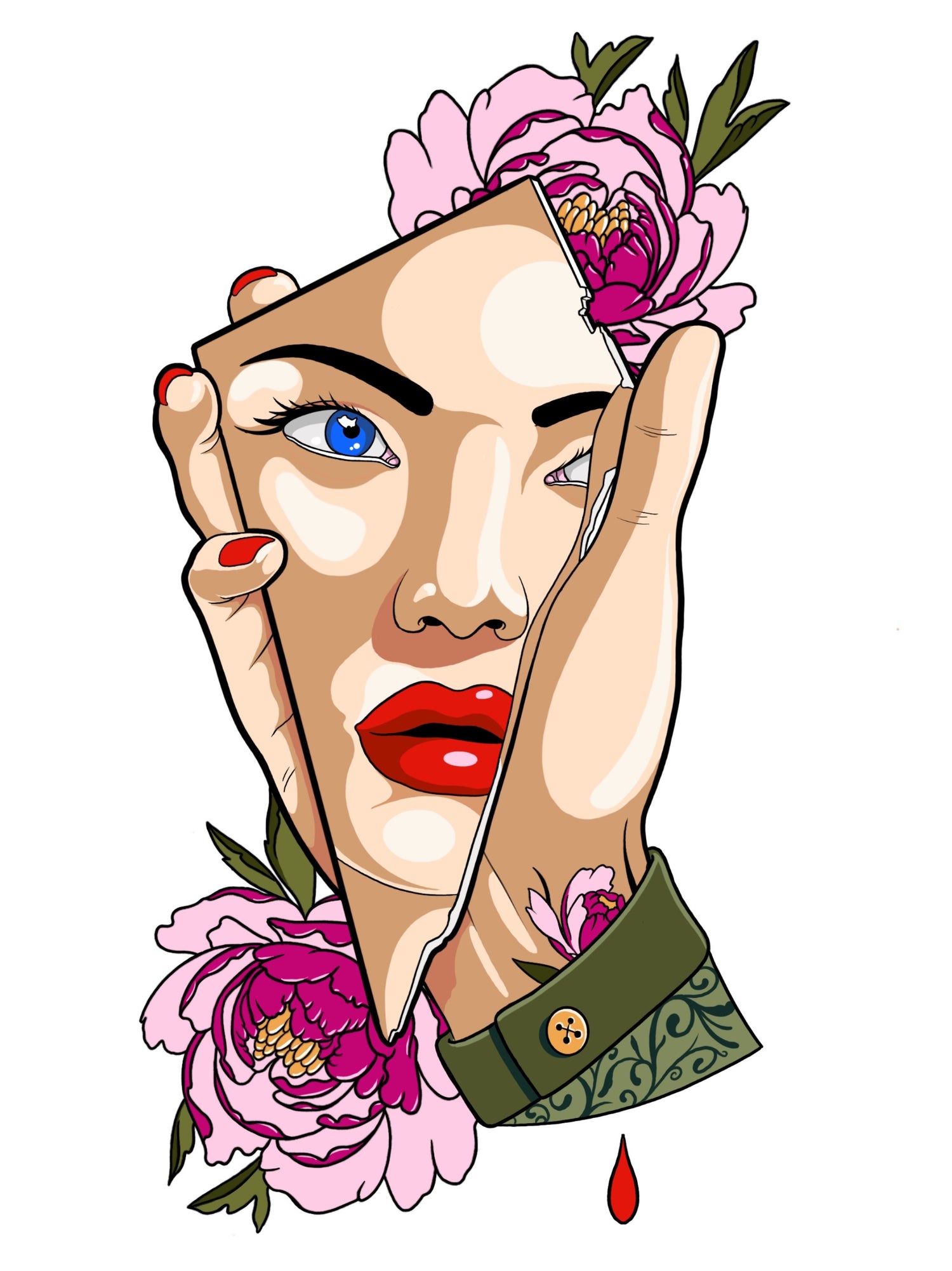 Pedro Rodrigues - Woman with Mirror - Drawing ready to tattoo