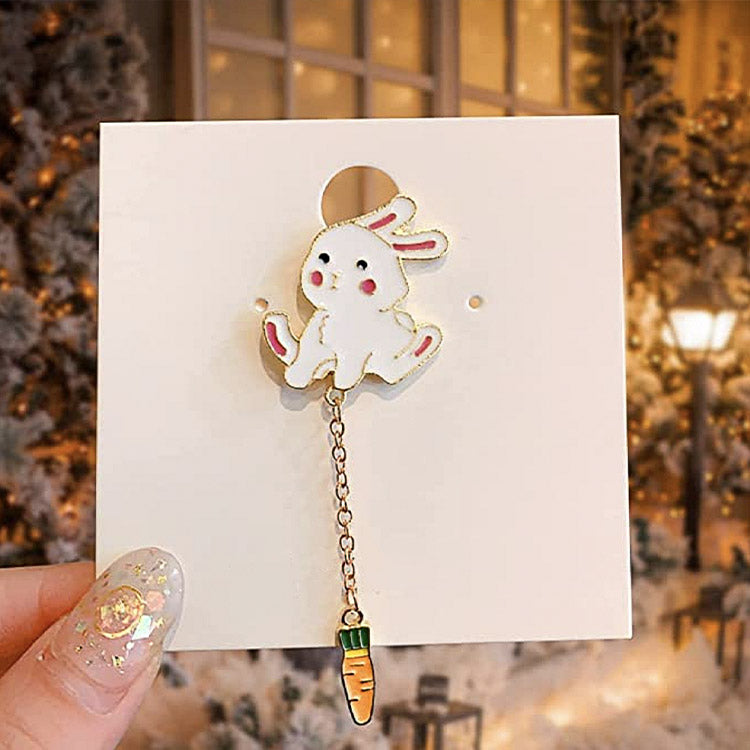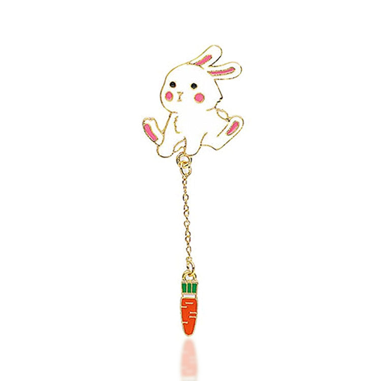 Badge - Pin de Solapa en forma de Conejo y Zanahoria, con cadena de metal y pintura esmaltada