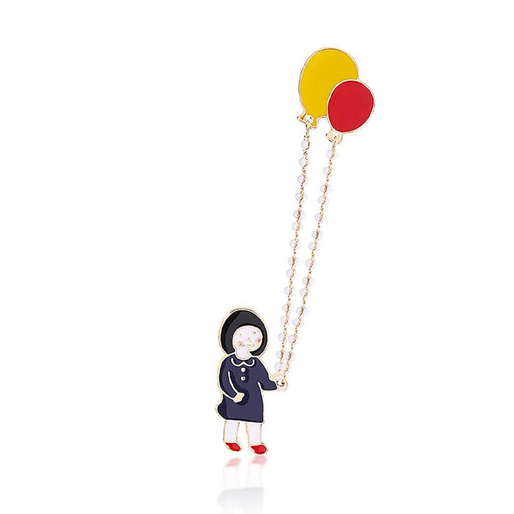 Chapa - Pin de Solapa Niña con Globo, en Metal y Pintura Esmaltada