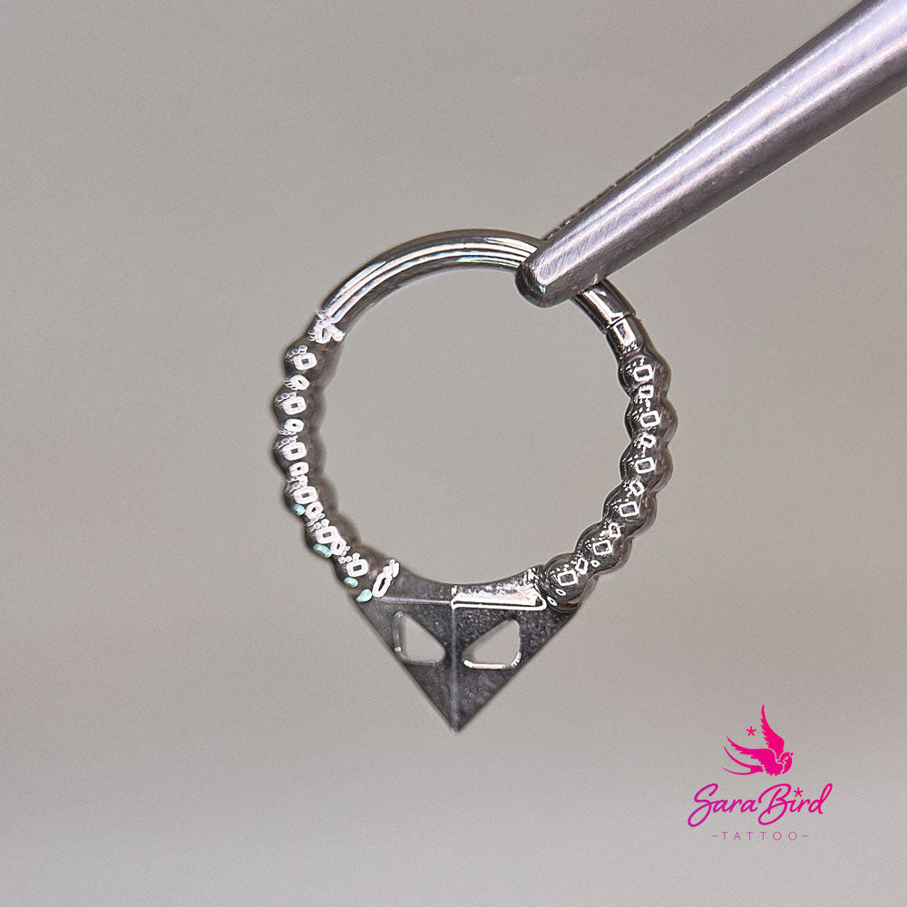Argola Articulada em Titânio com Decorações Esféricas e Detalhe em Triângulos
