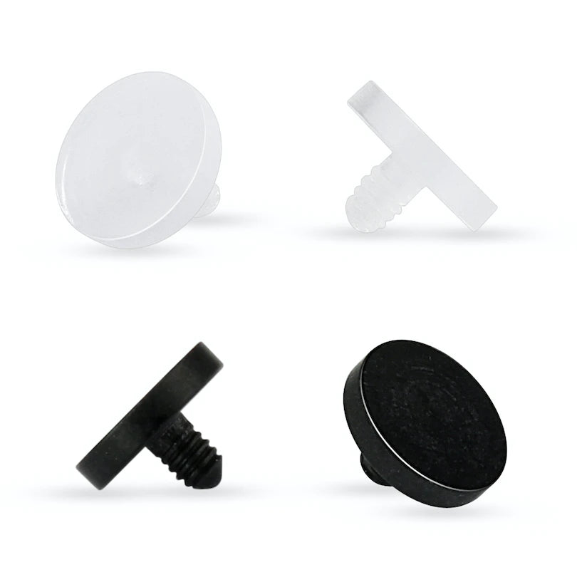 Pode comprar esta joia em acrílico preto ou branco. Se por exemplo, apenas necessita ocultar a sua perfuração por um dia, deve escolher a cor que menos contraste com a sua pele, para que passe mais despercebido.